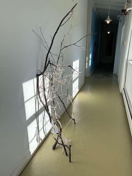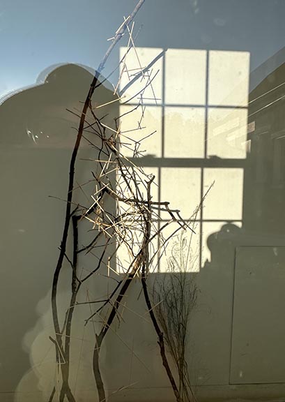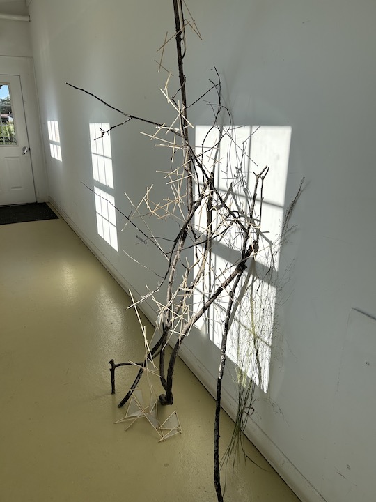 Beach tree, BBQ skewers, polypropylene, & Johnsongrass